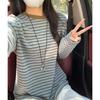 Contrasting striped long-sleeved shirt women's autumn lazy loose and thin top knitted crew neck bottoming shirt