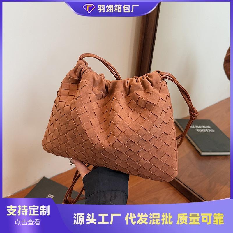Τσάντα ώμου με κορδόνι περίσφιξης, πλεκτή, για γυναίκες, καλοκαιρινή, απλή τσάντα, απλή τσάντα messenger για μετακινήσεις