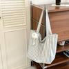 Striped canvas bag women's large-capacity summer new casual shoulder bag college student class tote bag