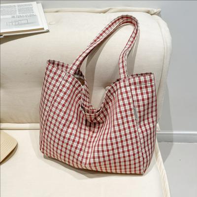 New Fashion Lazy Wind Slack Trend Tote Bag Double Sided Back Crossbody Bag Plaid Canvas Bag