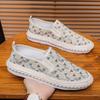 Old Beijing cloth shoes men's printing summer breathable lazy one pedal Doudou shoes men's soft-soled linen fisherman shoes