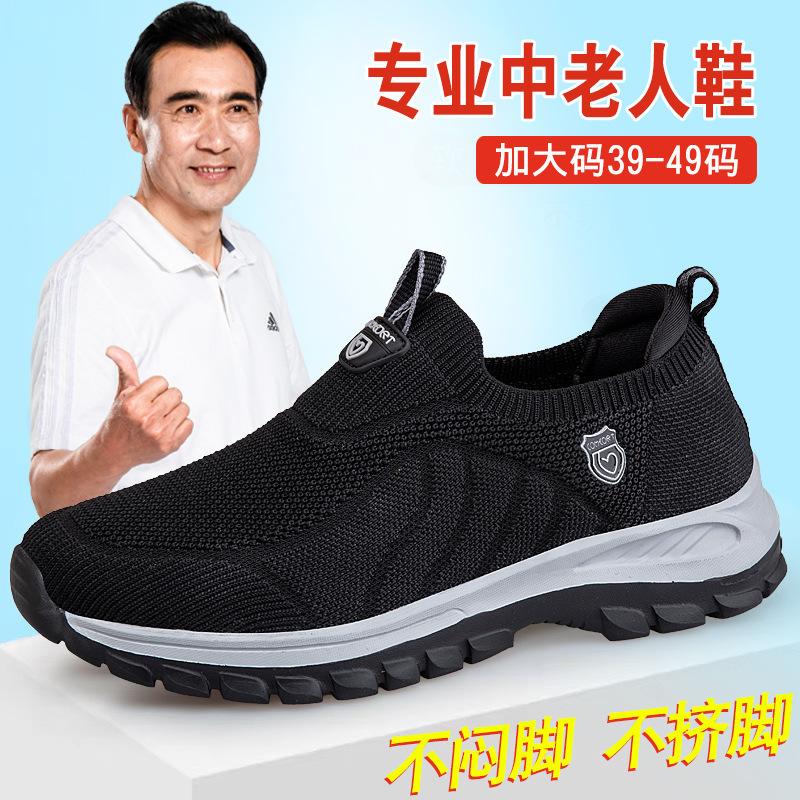 2025 brand elderly shoes spring and autumn size extra large size men's shoes middle-aged fat walking shoes dad sports shoes