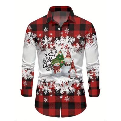 Ανδρικά Μακρυμάνικα Χριστουγεννιάτικα Πουκάμισα με 3D Ψηφιακή Εκτύπωση, Καθημερινές Μπλούζες για Φθινόπωρο και Χειμώνα