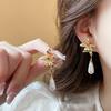 French Retro Flower Butterfly Pearl Fringed Earrings Light Luxury High-end Stud Earrings Niche Versatile Earrings Women