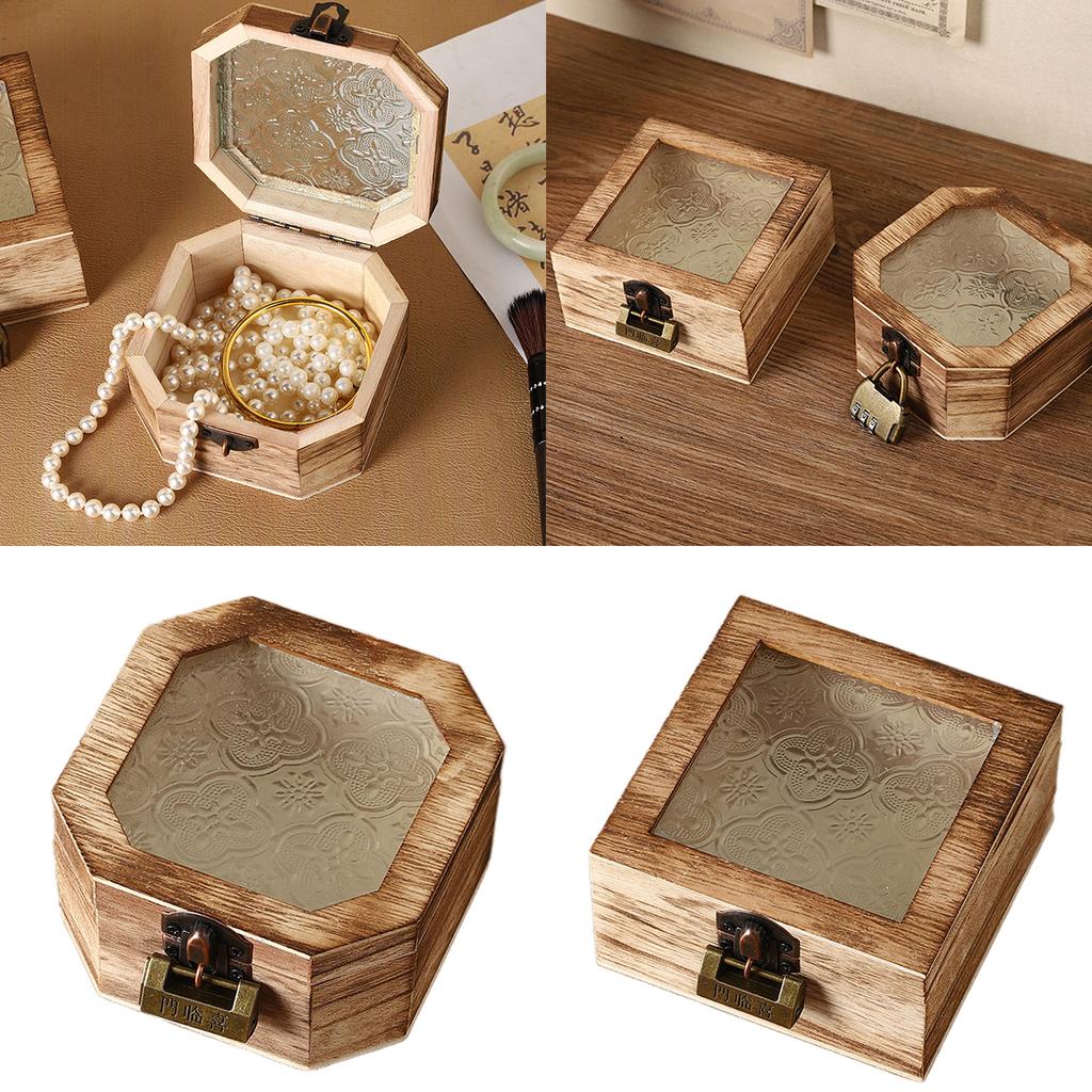 Elegant Begonia Pattern Jewelry Organizer With Glass Lid And Wooden Frame Storage Box For Vanity Table Decoration
