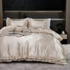 3PCS Satin Duvet Cover Set Silk White Khaki And Pink Bedding Comforter Cover Silky Ruffle Pattern Luxury Silky Bed set Soft