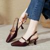 Fashion square toe high heels sandals women japanned leather slingback summer shoes ladies party shoes sandalias de mujer verano 2025