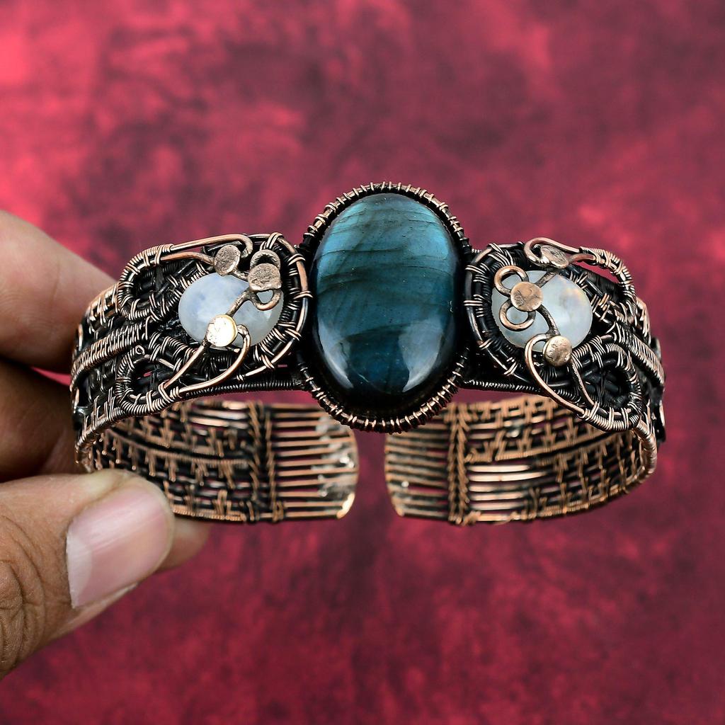 Βραχιόλι Λαβραδορίτη Χάλκινο Καλώδιο Τυλιγμένο Ρυθμιζόμενο Βραχιόλι Μανσέτα Βραχιόλι Φεγγαρόπετρα Ουράνιου Τόξου Χειροποίητο Βραχιόλι με Πολύτιμους Λίθους Χάλκινο Κόσμημα Για Δώρα
