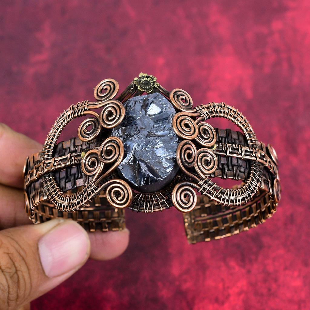 Shungite rough cuff bracelet copper wire wrapped jewelry adjustable bangle natural gemstone handmade bangle copper wire wrap cuff bracelet