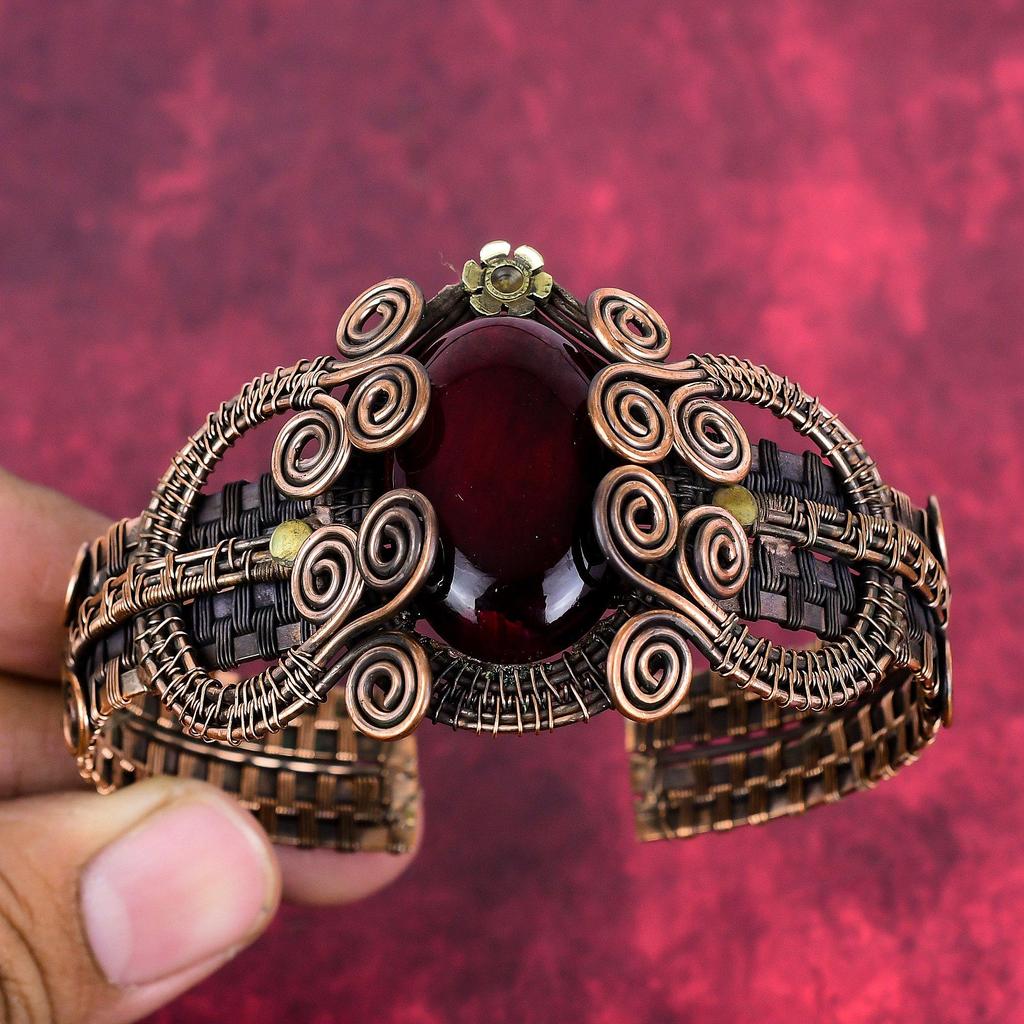 Red fire labradorite bangle gemstone cuff bracelet copper wire wrapped bangle adjustable bangle handmade copper wire jewelry engagement gift