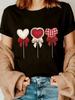 Women'S Valentine'S Day Casual T-Shirt Anime Heart Pattern with Embossed Flower Design a Must-Have for Summer Parties Trendy