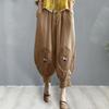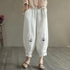 Women's Cotton and Linen Nine-minute Pants Lantern Embroidery Spliced Lace Lace Casual Loose Elastic Waist Haren Plus Size