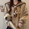 Autumn Winter Brown Knitted Sweater Navy Collar Loose Fit Casual Tops Korean Fashion Women Outwear