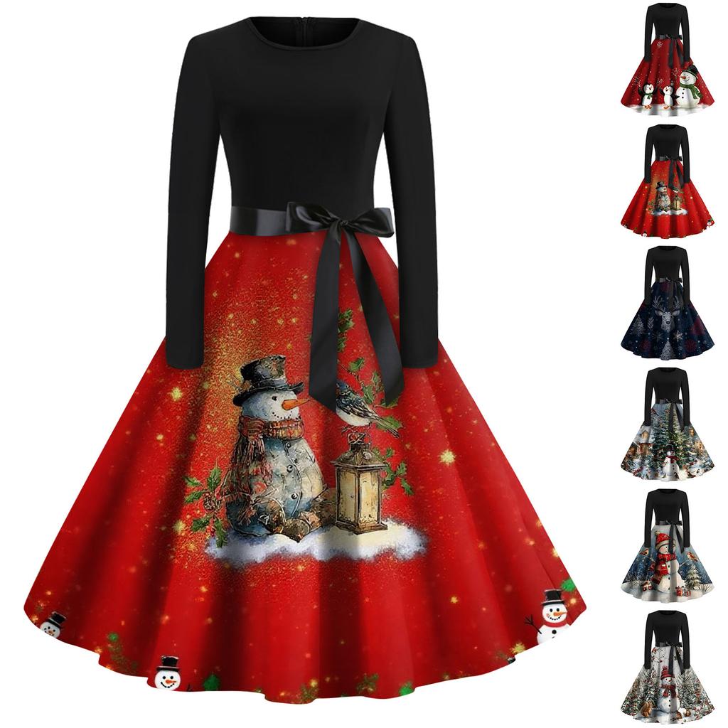 Γυναικείο Μόδα Στρογγυλό Καθημερινό Στενή Γραμμή Χριστουγεννιάτικη Εκτύπωση Μεγάλη Κίνηση Μακρυμάνικο Φόρεμα
