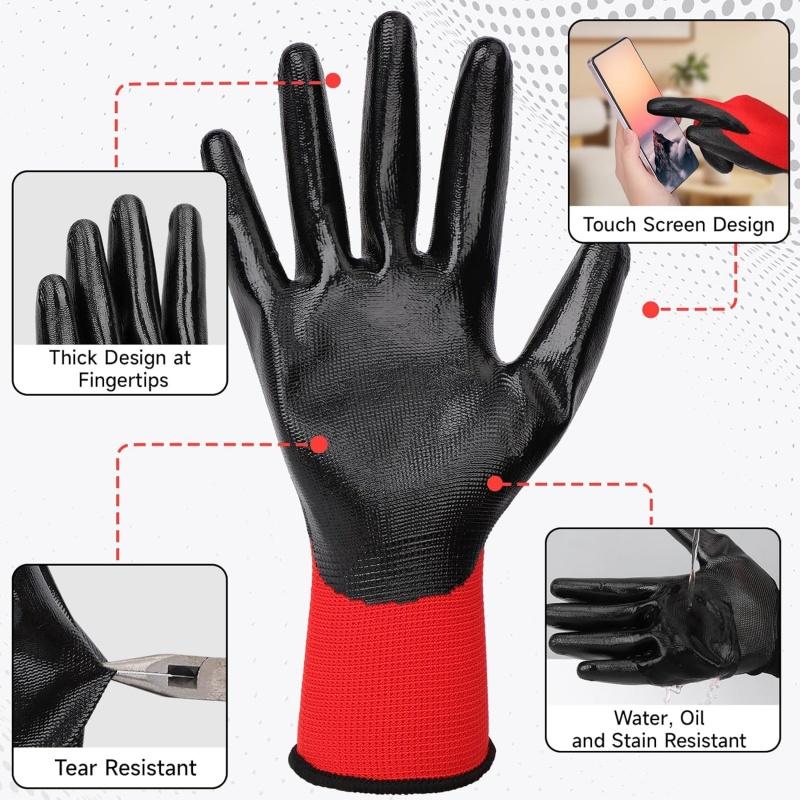 12PCS Safety Work Gloves PU Coated Seamless Knit Industrial Work Labor Gloves Polyurethane Coated Grip for Construction Assembly