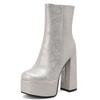 Platform Women's Ankle Boots New 2025 Autumn Winter Shoes Block Heels Short Boot Black Pink Silver Footwear Shoes Large Size 46