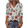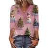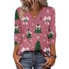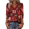 Women's Loose Comfortable Casual Fashion V-Neck Christmas Print 3/4 Sleeve Top