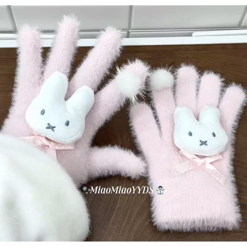 High-value Miffy Rabbit Gloves Total Plush Windproof Cold-resistant Warm All-inclusive Finger Gloves