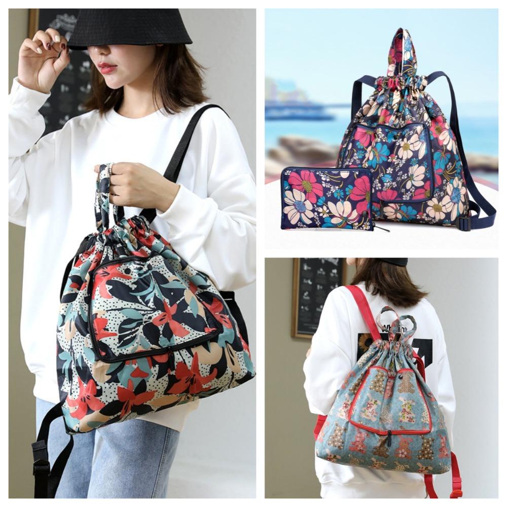 Multifunctional Drawstring Bag Lightweight Folded Backpack Simple Shopping Bag Camping