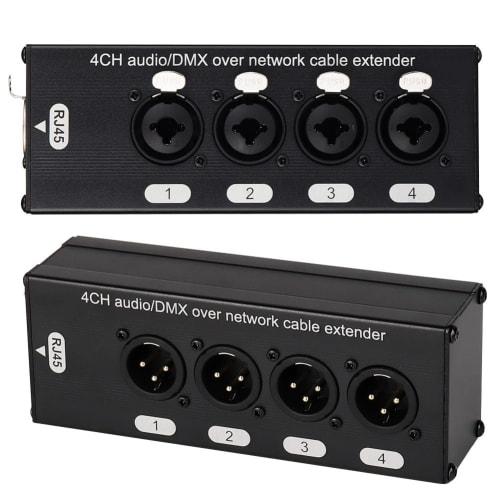 - Αυτοί οι δύο προσαρμογείς μεταφέρουν τέσσερα αναλογικά ηχητικά σήματα XLR μέσω ενός καλωδίου δικτύου RJ45, συνδέοντας ήχο από μίκτες, μικρόφωνα και όργανα στις θύρες XLR, και δρομολογώντας και τα τέσσερα σήματα σε έναν άλλο προσαρμογέα μέσω ενός θωρακισμένου, balanced καλωδίου Ethernet.