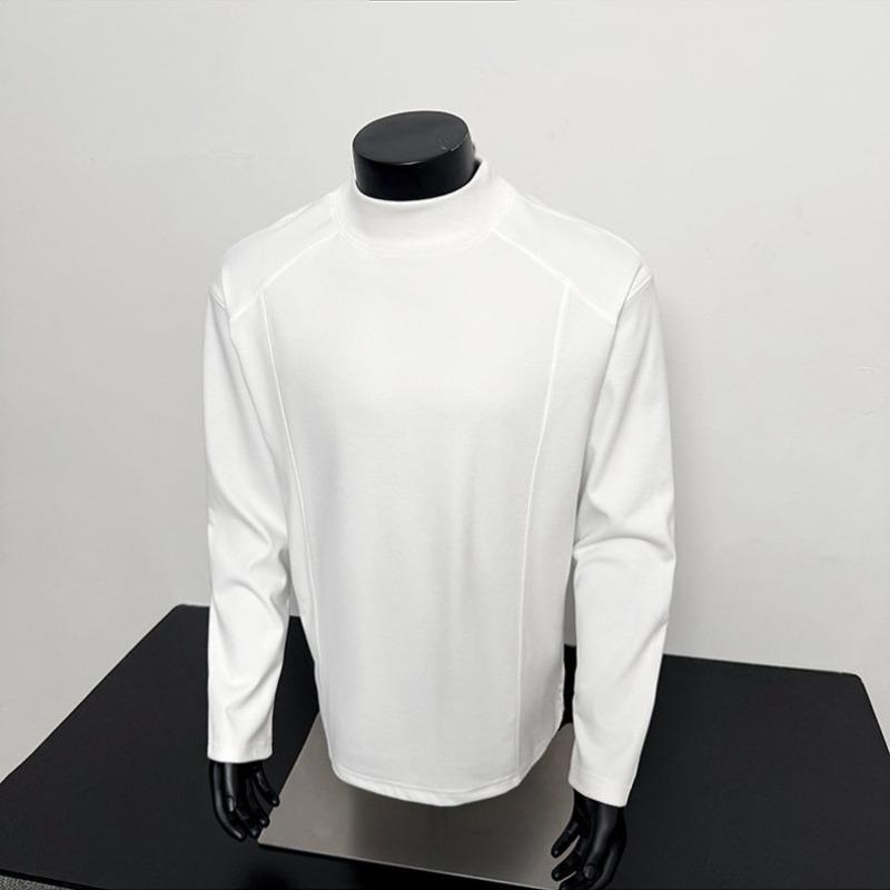 Spring Autumn New American Long-sleeved T-shirt Sweatshirt Top for Men's Stand-up Collar Solid Color Casual Loose Pullover