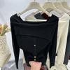 Ένα κομψό πλεκτό πουλόβερ με έναν ώμο για γυναίκες για το φθινόπωρο και τον χειμώνα, ένα εφαρμοστό βασικό στρώμα που κολακεύει τη σιλουέτα, ένα μοναδικό και ξεχωριστό τοπ