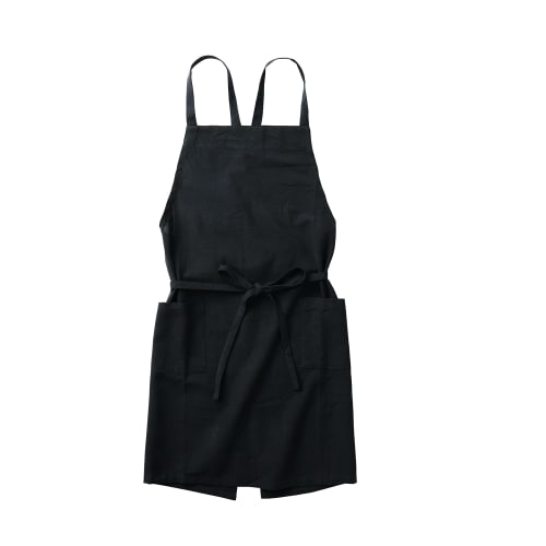 Rep habituel Sol Apron, Black, 73cm Long x 84cm Wide, with Pockets, 100% Cotton, Machine Washable, for Men and Women, Shoulder Strap, Tie-in Front, St