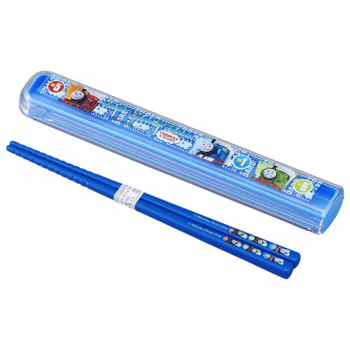 OSK Bento Box Set with Pull-Lid and Chopstick Holder, Thomas the Tank Engine Design, 16.5cm Chopsticks/Sliding Lid, Made in Japan, Dishwasher Safe, HS