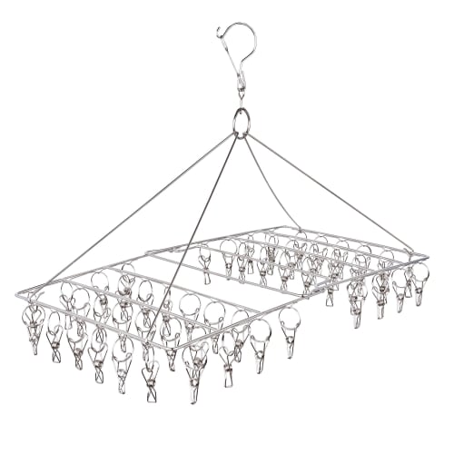 1. KEY FEATURES: - ① Foldable design, space-saving storage: The foldable laundry pinch hanger can be folded compactly when not in use, and can be stored neatly without taking up space.Not only can it be used indoors, but it can also be used as a portable laundry item that is convenient for traveling and business trips. - ② Convenient small clip included: This laundry drying hanger is equipped with a number of durable small clips, allowing you to dry small items such as socks, underwear, and towels all at once.The design as a clothespin hanger is also ingenious, and removal is easy. - ③ Gentle clip that won't leave marks on clothes: The laundry pinch is made of soft elastic material and is designed to firmly grip clothes without leaving marks.As a laundry hanger pinch type, you can safely use it on thin clothes and delicate fabrics. - ④ Excellent load capacity and excellent stability: The main body has a sturdy structure, so even if you dry a lot of wet clothes, it won't lose its shape and you don't have to worry about it falling.This corner hanger type laundry drying hanger can be used as a towel drying rack or clothes drying rack, and is highly durable and can be used for a long time. - ⑤ Useful and practical in a wide range of situations: Great for not only home balconies and bathrooms, but also dorm life and travel destinations.Hanging laundry hangers take up less floor space and create an efficient and clean drying environment.This is a multi-functional clothes rack that is perfect for busy households as it is used for drying laundry every day.