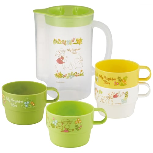 A set that includes a cold water bottle and 4 cups. The cups can be stored in the cold water bottle, making it convenient for going on vacations and picnics. Also useful for indoor parties, barbecues, and camping. A set that includes a case that can be used as a pitcher and stackable cups. The cups can be stored inside the case, making it convenient to carry and store. The case has a scale and is translucent, making it easy to see what's inside. Cannot be used in a microwave.