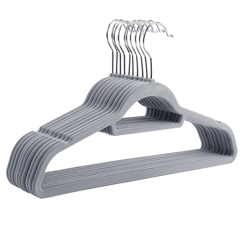 AYO Hangers, Non-Slip, Anti-Slip, 10-Piece Set, Gray, Heavy-Duty, Ideal for Closet Storage, 360-Degree Rotating Hooks, Resists Deformation of Clothes,