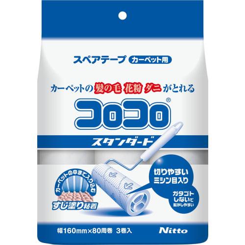 Nitoms Corocoro Spare Tape, Standard, for Carpets, Pollen, Dust Mites, and Pet Hair, 160mm Wide, 80 Wraps, 3 Rolls (C4790)