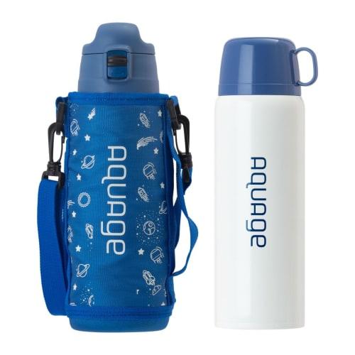Atlas Water Bottle, 850ml/810ml Capacity, Insulated, Cold, and Hot, Lightweight, for Kids and Children, Includes Cup, 2-Way Design, Pouch, Navy, Aquag