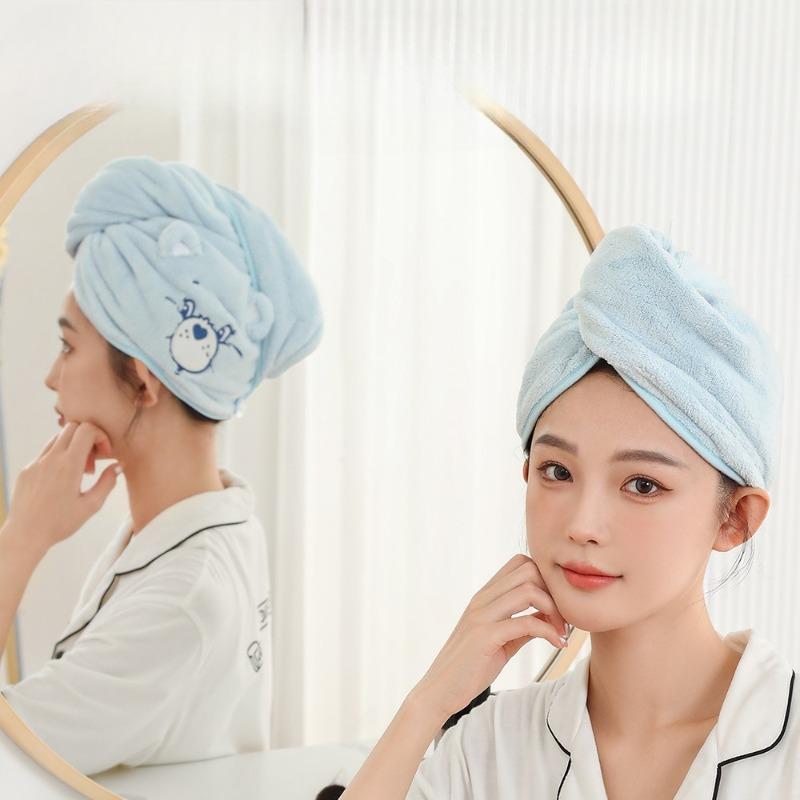 Love Little Bear Coral Fleece Absorbent Dry Hair Cap Quick-Drying Shampoo Dry Towel Prevents Hair From Falling Out