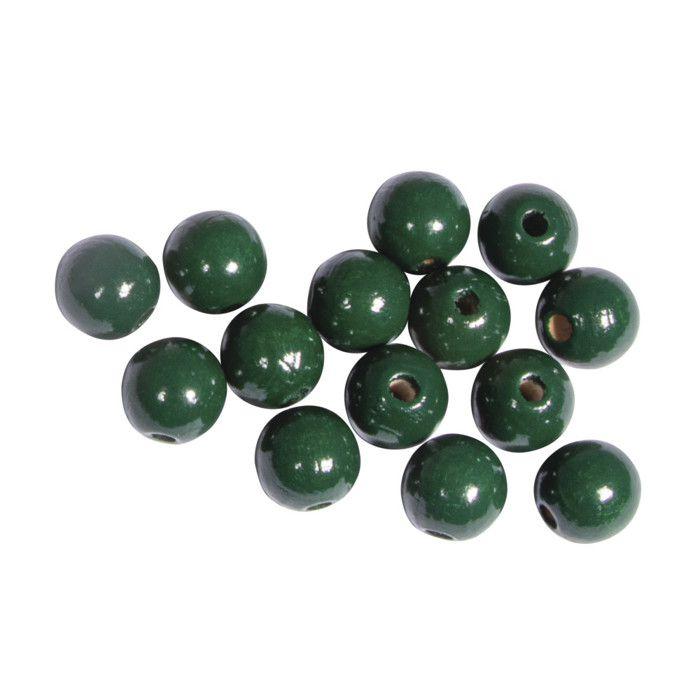 Perles en bois FSC 100%, polies, 10mm ø, vert moyen, 52 pièces