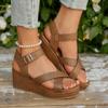 Retro Buckle Decor Wedges Sandals Women Plus Size Ankle Strap Thick Sole Non Slip Casual Shoes Summer Chunky Platform Sandalias