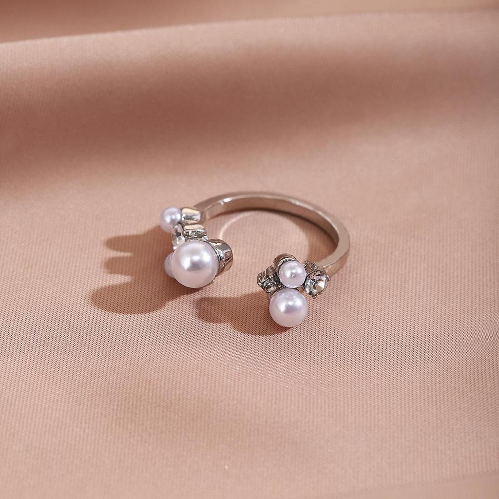 Diamond Pearl Adjustable Open Ring - Elegant, High-End Design