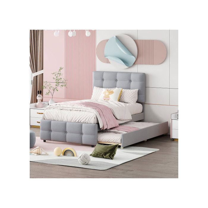 Lit rembourré - MUVOE - 90 x 200 cm - Extensible - Tête de lit réglable - Gris