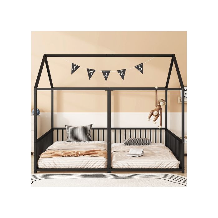 Lit d'enfant - MUVOE - 90x200 cm - Métal noir - Garde-corps sécurisé - Design créatif