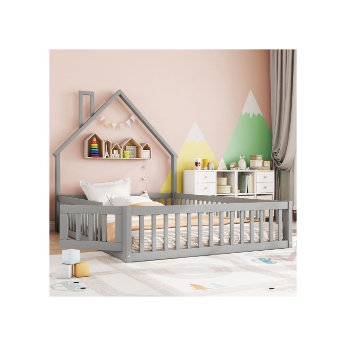 Lit - MUVOE - 140 x 200 cm - Rembourré - Pin - Style minimaliste - Gris