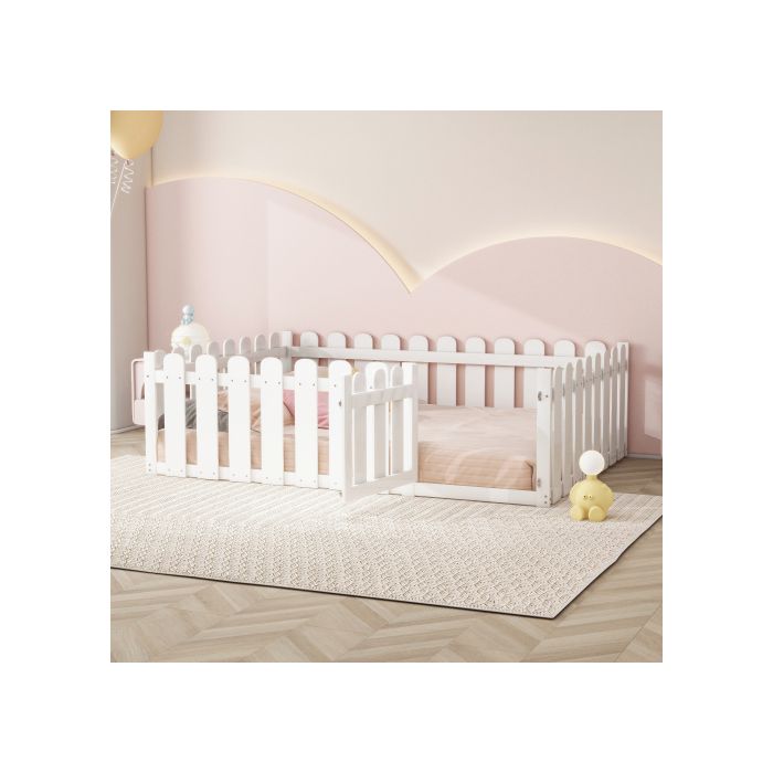 Lit d'enfant - MUVOE - 140 x 200 cm - Bois massif - Blanc - Design avec porte