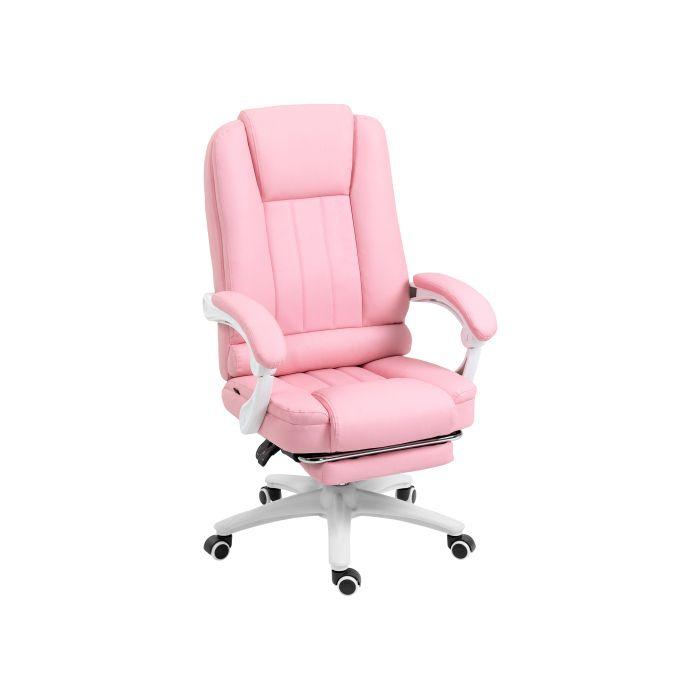 Chaise de bureau - MUVOE - Similicuir rose - Hauteur réglable - Dossier inclinable - Repose-pieds intégré