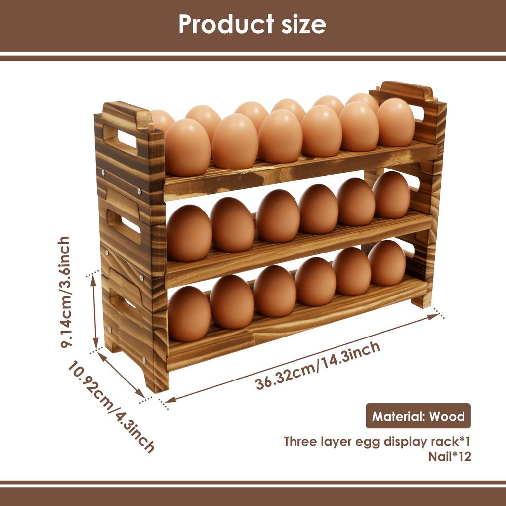 Premium Material : The egg rack is made of solid wooden materials , which is sturdy and reliable . It can hold eggs stably and is suitable for long term use