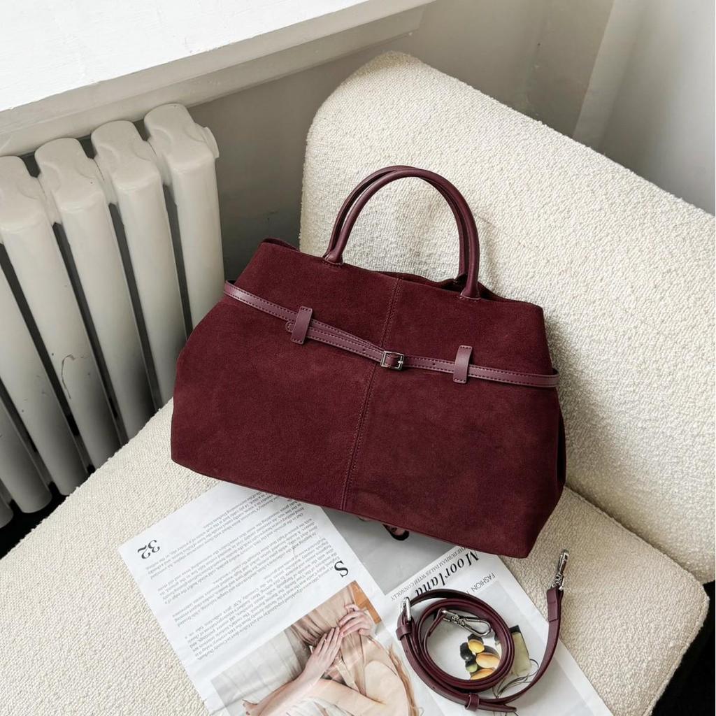 Premium Suede Large-Capacity Women's Tote: Genuine Leather, Retro, Versatile, Frosted, Handheld, Shoulder and Crossbody Bag.