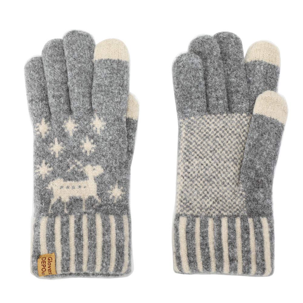 GlovesDEPO Made in Smartphone Reindeer and Snowflake Gray Women's Cashmere-Like Gloves, Japan, Compatible, Print,