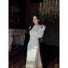 2024 Autumn Light Mature Solid Color Long Dress with 3D Applique
