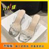 French temperament socialite half drag fairy pearl crystal sandals beautiful transparent crystal high heel sandals 2025 new
