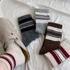 Γκρι μάλλινες κάλτσες, κάλτσες φθινοπώρου και χειμώνα, γυναικείες κάλτσες μέχρι τη γάμπα, κάλτσες χωρίς ραφές, ζεστές ενισχυμένες ριγέ μακριές κάλτσες με πλούσια υφή
