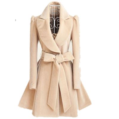 Μαλλινα Παλτό Φθινοπώρου και Χειμώνα για Γυναίκες Μεσαίου Μήκους Πάνω από το Γόνατο Εφαρμοστά Μαλλινα Παλτό με Κορδόνια για Γυναίκες