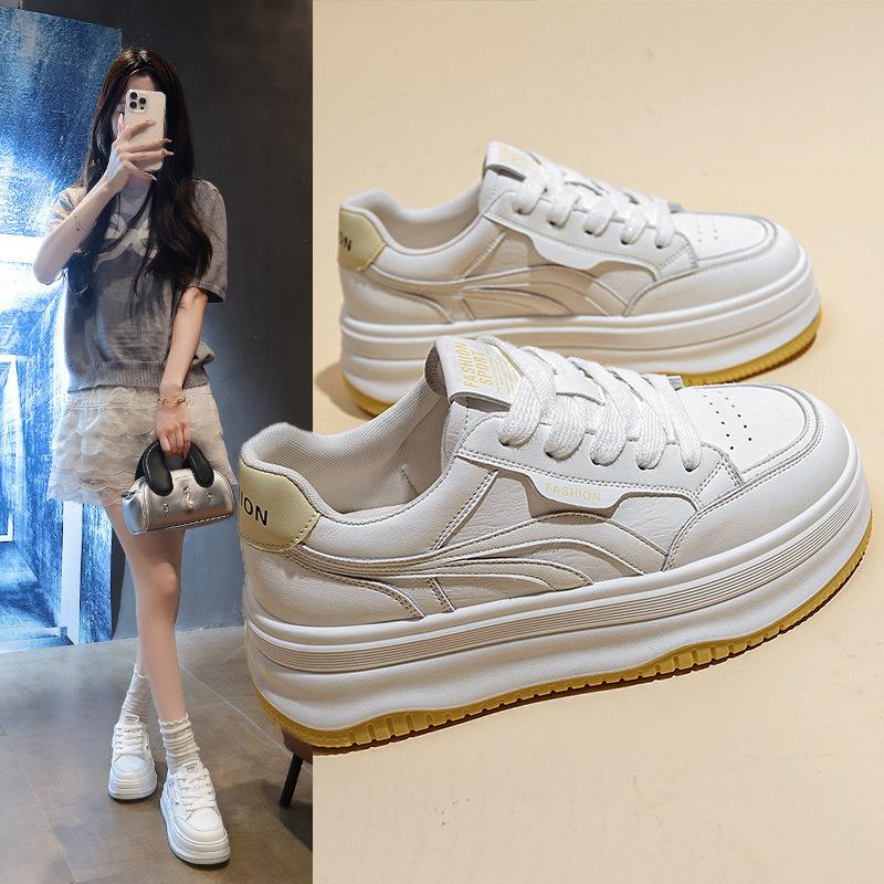 Little white shoes 2025 summer new breathable versatile women's models increase height small leather surface explosion thick baseplate shoes super fir